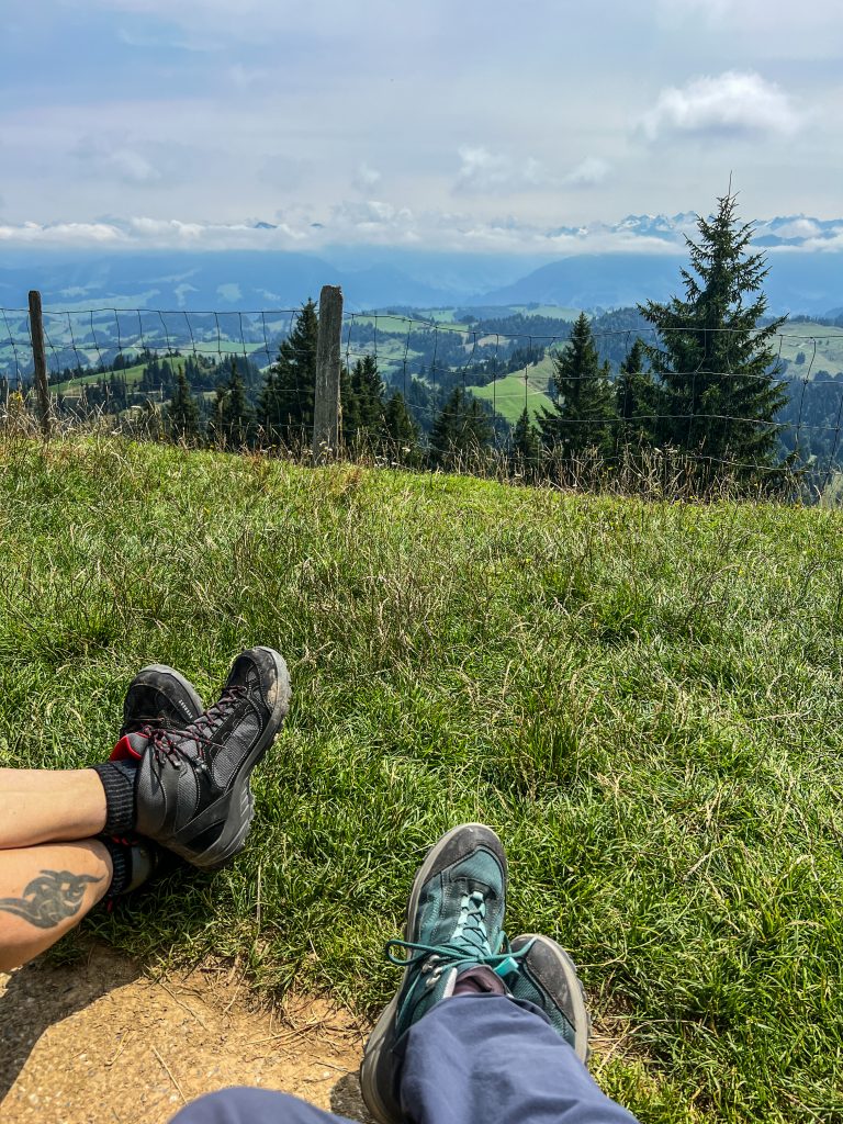 Kein Wunder also, dass wir nun bereits zweimal oben auf dem 1.406 Meter hohen Gipfel waren und auch schon andere Touren rund um den Napf gemacht haben. Klar, er ist jetzt nicht sooo hoch, allerdings für mich als Norddeutsche Deern schon ganz schön mächtig und die Wandertouren durchaus auch etwas anspruchsvoller. Hier geht es wortwörtlich über Stock und Stein und Trittsicherheit sollte man schon haben. FlipFlops sind hier nicht die richtige Ausstattung, schon gar nicht für ungeübte Wanderer.